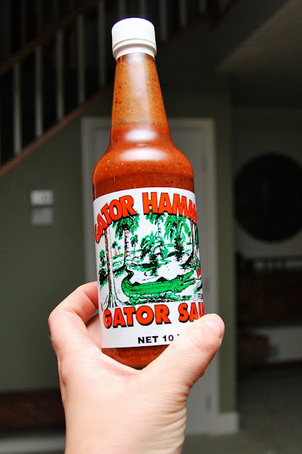 Ummm, look how thick and spicy it is. Gator sauce, now I gotta find me a gator to put it on! Do you think this will go with my raw diet? Oh, that's right, this was for mom and dad. I get the bully stick!